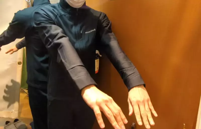 先ほど紹介したストレッチクリマプラスという、ナイロン47%、ポリエステル36%、ポリウレタン17%の化繊素材は、縦横2方向への抜群のストレッチ性があって、腕を曲げても突っ張り感がなく、しゃがみ込んで背中が曲がっても体に吸い付くような心地よい着用感です。