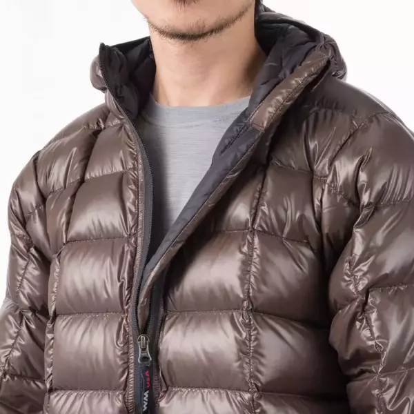 厳しい試験で合格したダウンだけを使用するこだわりあるブランドとして知られるウェスタンマウンテニアリングの最軽量ダウンフーディーです。フードはパイピングによって顔周辺にフィットし、ハンドウォーマーポケットには両面にダウンが入っているため、非常に暖かく、フロントジッパーの内側にはドラフトチューブが施されているなど非常に暖かいダウンジャケットです。