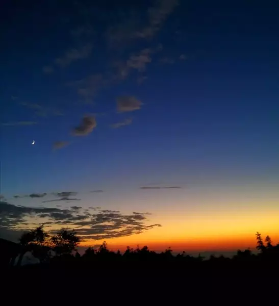 日が沈み、三日月が美しい。星もきれいだった。