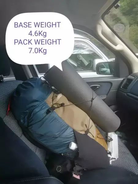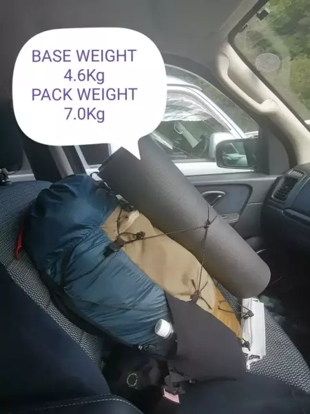 - パックウエイト(食料、水、ギアを入れた総重量)7.0Kg