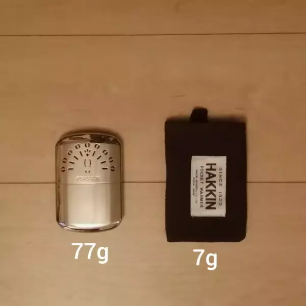 また、足元の寒さ対策としてハクキンカイロを使っています。ハクキンカイロは保温時間が24時間と長いうえに、非常に温かいカイロです。ハクキンカイロを足元に置くだけで足元はポカポカです。使い捨てではない点もgood!
