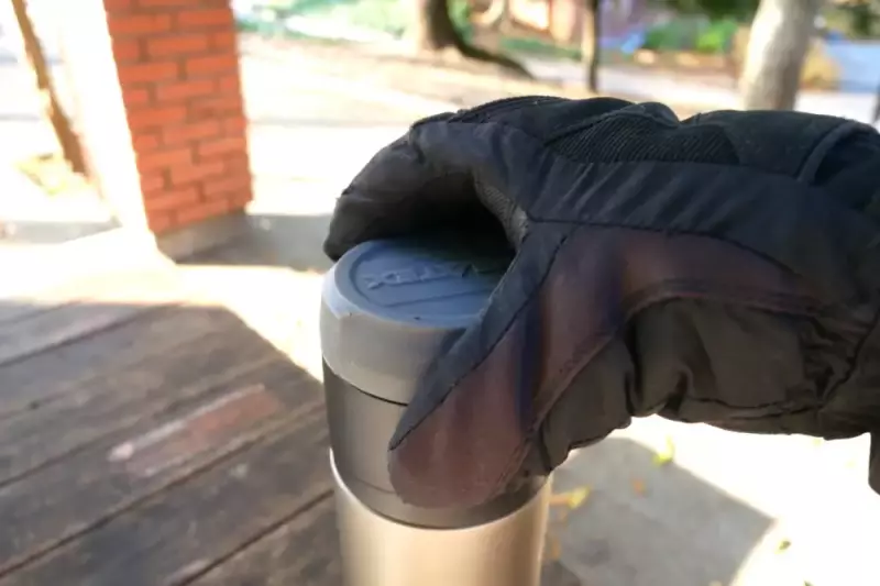 グローブをはめて掴むと、水筒自体が大きいのと重いので、女性の手では片手で持ちづらいと感じました。