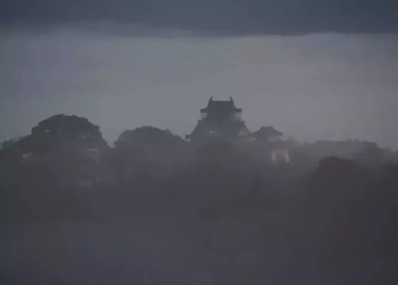 うっすら城が見えてきました。幻想的です。