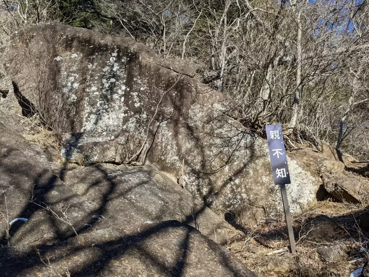 この先は、ガレ場となり危険を伴う登山道となる事より登山者の安全を祈願して、1859年に岩に文字が刻まれました。