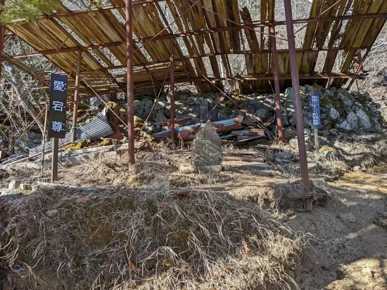 修験道の山では不動明王が祀られている事が多いように思いますが、同じ明王でも愛染明王が祀られていました。愛染明王は恋愛、縁結び、家庭円満、そして愛が藍になり染物、織物職人の守護仏との事です。
