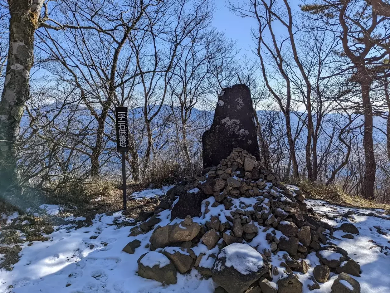 写真撮り忘れました<(_ _)>。三ツ峠山の表参道を進み登山道に入ると高さが1mもある大きな岩が祀られており、岩の表面には文字が彫られています。大日如来を意味するアークという梵字で、修験道の本尊とされているそうです。達磨石が祀られている周辺は出水により一瞬で埋まってしまった経緯があり、幕末期に水難防止の願いを込めて達磨石が建てられました。