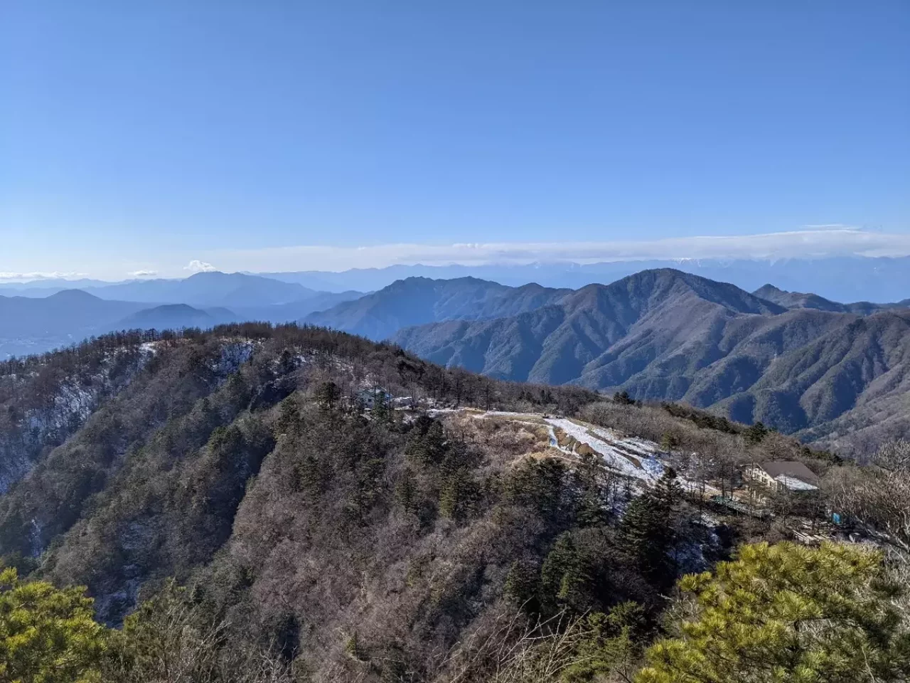 山頂は比較的ゆったりとしたスペースがあるので休憩を取るのにちょうど良い場所です。富士山や南アルプスの絶景を眺めながら贅沢な時間を過ごすことが出来ます。