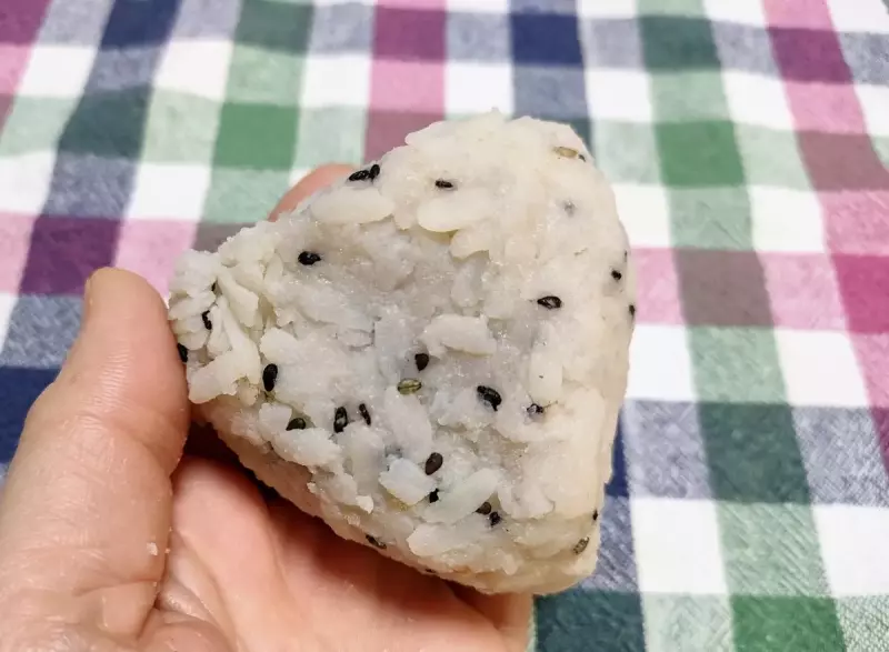 食べ残しをジップロックの外から握ると、おにぎりになりました(笑)
