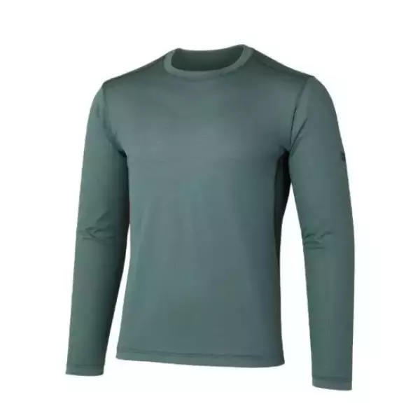 肌が触れる内側にドット状の接面を持たせたテクニカルなロングスリーブタイプのベースレイヤーです。表面は汗を素早く拡散させ、裏面は撥水加工を施した二重構造で、汗を吸って移行させる作りとなっています。