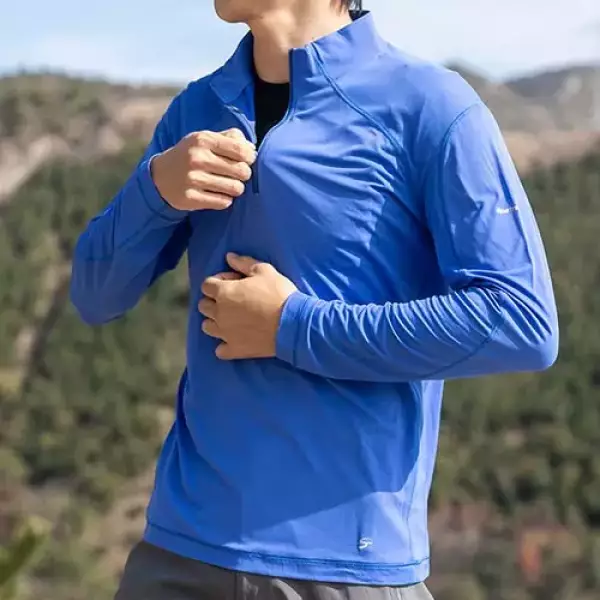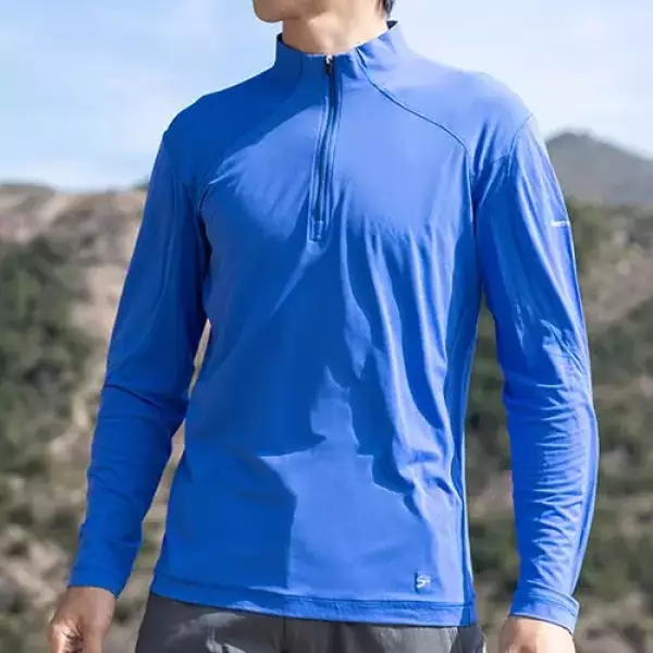 登山開始から終わりまで暑い状態が続くので、できるだけ、通気調整ができるジップアップタイプが最も快適です。そして発汗量がきっと多いから、汗の乾きが早い化繊素材が気持ちよく登山ができるでしょう。
