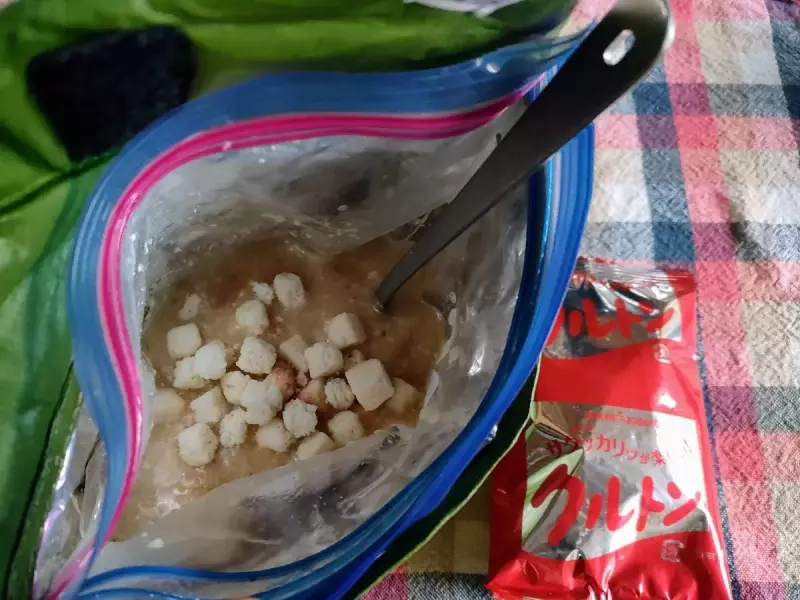 山旅スタンドコジ―とジップロックを使った山ご飯で、誰もが一度は作ってみたくなってしまう失敗知らずの定番メニュー【ジップロックカレーメシ】を紹介します。おいしそう♪