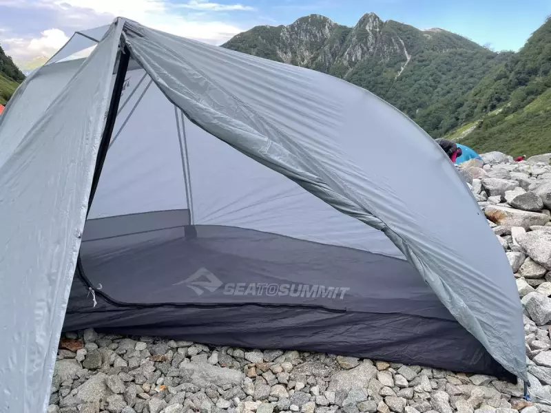 山岳用テントの主流は居住性が高いダブルウォールテントです。