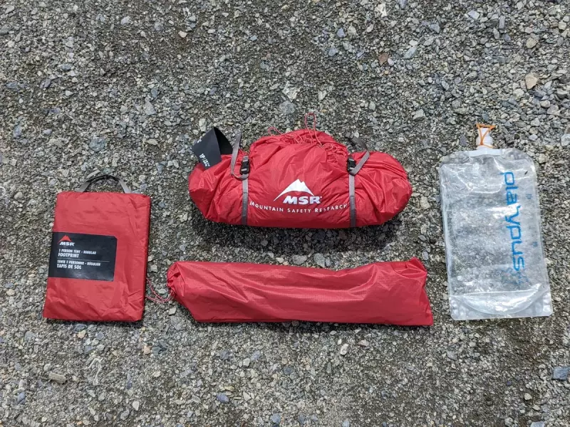 総重量とは、これらに追加してペグ(テントステーク)、ガイコード(張り綱)、スタッフサックの合計重量を指します。