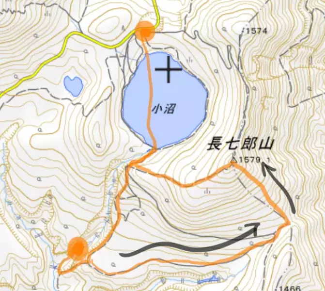 冬季は小沼から長七郎山へ登るコース(氷瀑なし)、小沼から氷瀑に行って長七郎山へ登るコースがあります。