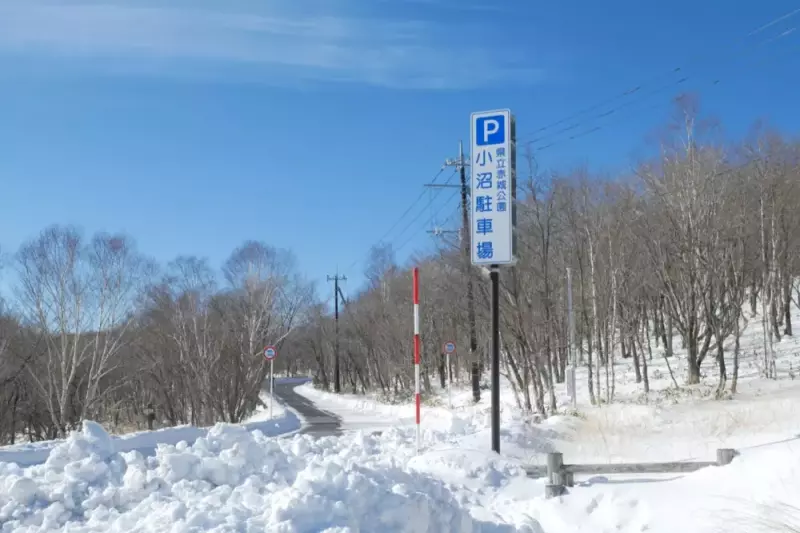 県立赤城公園小沼駐車場から小沼に向かって行くところに、長七郎山の登山口があります。