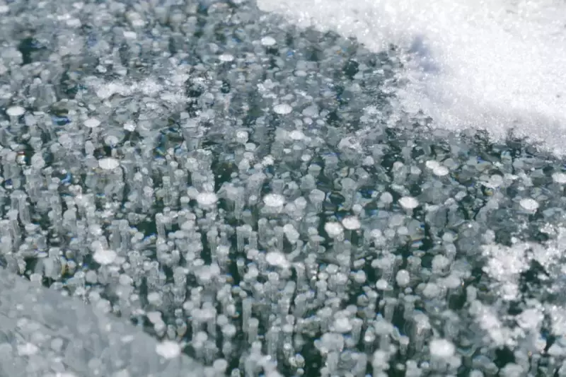 アイスバブルとは、凍った湖面の中に気泡が凍って閉じ込められている様子のこと。
