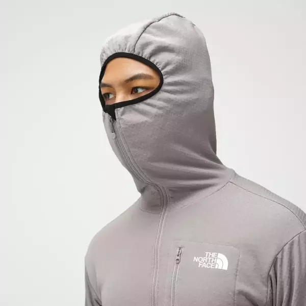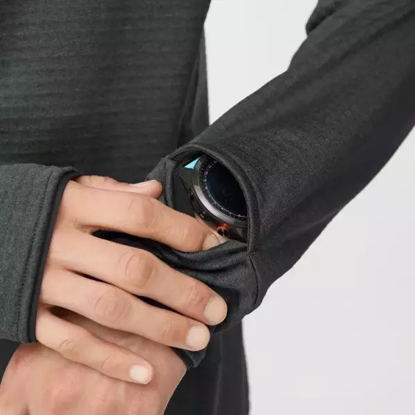 フューチャーグリッドと呼ばれるオリジナル素材を使用したバラクラバ付きのプルオーバータイプミドルレイヤーです。グリッドの凹凸によって素早く汗を吸い上げ、汗離れを促進する素材なので、オーバーヒートしやすいトレイルランニングや、高所登山での使い心地に適したミドルレイヤーです。静電ケア設計でハードシェルの着脱時にパチパチしづらく設計されています。