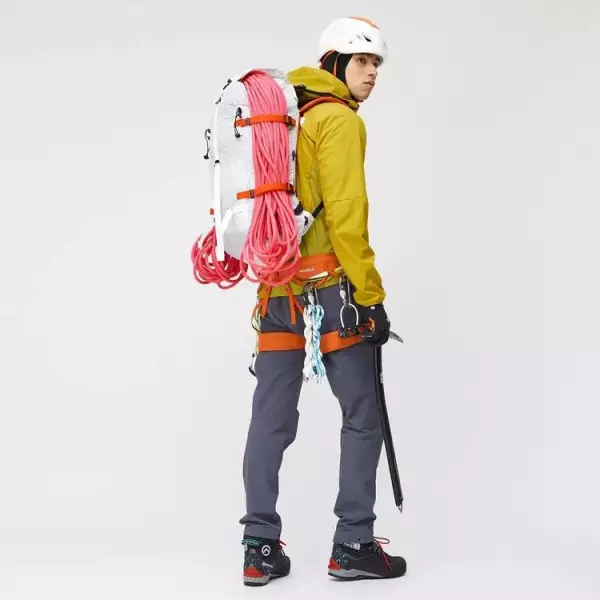 - 特徴:表地は防水通気素材FUTURELIGHTとストレッチ素材をハイブリッド/厳冬期の行動着としてアウターとしてもミドラーとしても活用できる仕様/両胸ポケットでハーネスに干渉しない仕様/サイドジップはハーネスの上からの着脱を考慮したフルオープン仕様