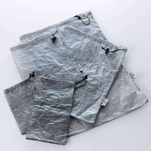ダイニーマを使用したスタッフバッグを使用すれば、中のものを濡らさないだけでなく、中身を外側から確認することができ、装備重量全体の軽量化にもなり、一度購入すれば長い期間使用し続けることができます。
