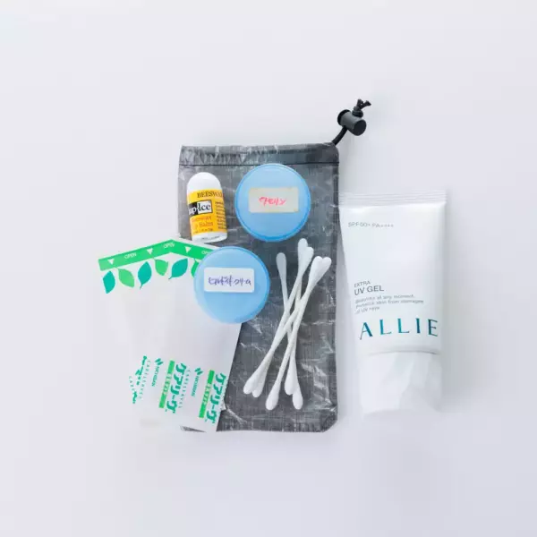 いざというときにすぐに使用できるように、絆創膏、軟膏などを入れてサコッシュなどに入れておくのにちょうど良いサイズの小型スタッフサックです。