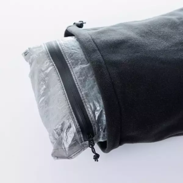 本体の縫い目はキューベンテープでシームされており、極限まで軽量化にこだわっています。また雨で濡らしたくないダウンジャケット、ダウンシュラフ、電気機器やデバイスをしまうのに便利です。