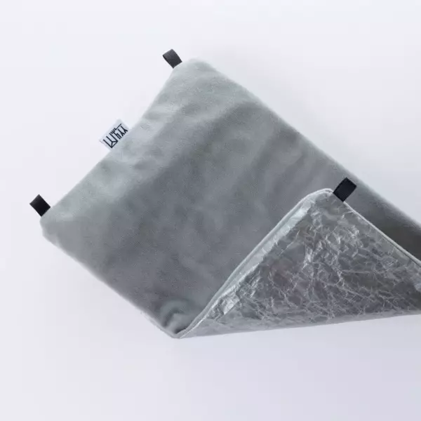 頭に当たる部分はポリエステル100%のニット地でふわっとした気持ちのよい素材でありながら軽量に作られています。ごわつかずコンパクトになるのが特徴です。