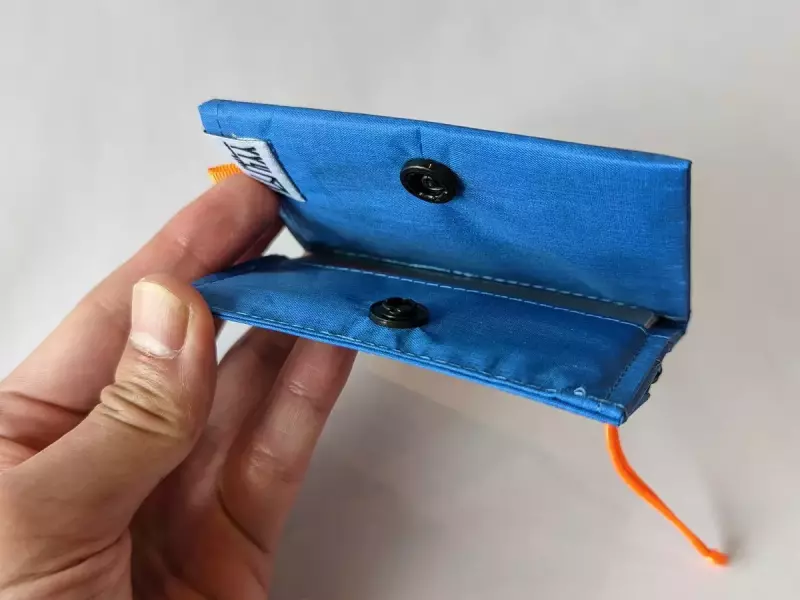 登山中の雨や汗によってお札を濡らさないで持ち歩くことができるよう、止水ファスナーで作れらています。