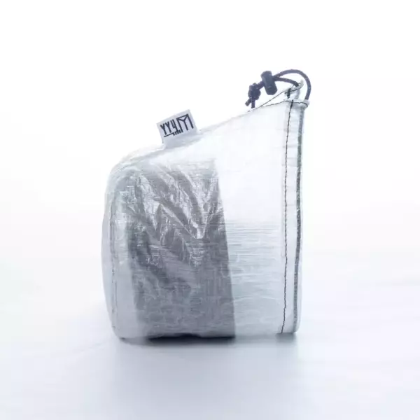 2種類の大きさがあり、軽量なクッカー用スタッフバッグとして仕上げた、400は0.4L、500は0.5Lほどの大きさです。ダイニーマで作成しているため、耐久性に優れており非常に軽量です。