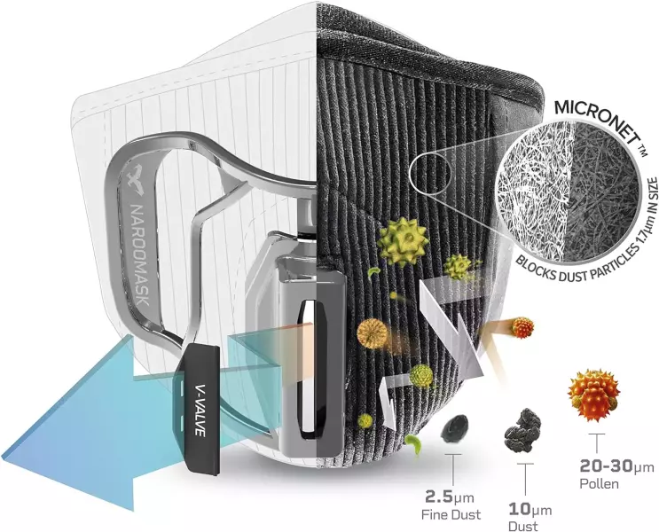 普段使いしやすく最もスタンダードなモデルが『NAROO MASK F.U+』です。待機中のホコリや花粉を除去するマイクロネットフィルター構造のスポーツマスクで、除去してくれます。