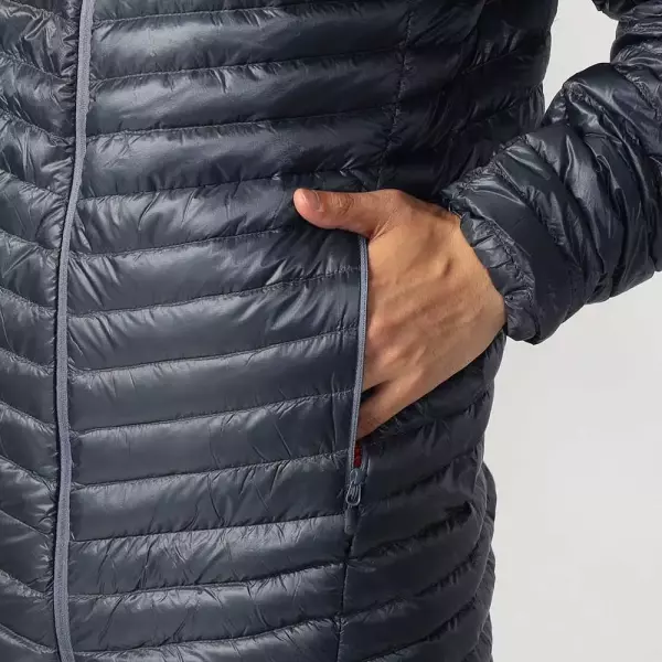 ウルトラライトダウンジャケットはダウン量だけで考えるのではなく、フィルパワーの高い高品質なダウンの使用とシェルの薄さ、そしてフードがないことやドローコードを極力省いた作りにも目を向けましょう。