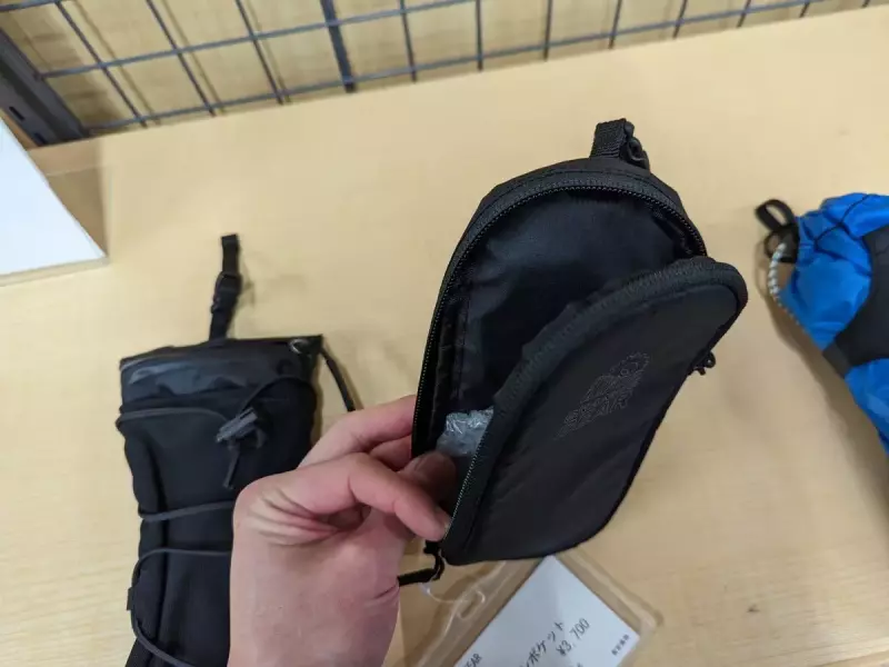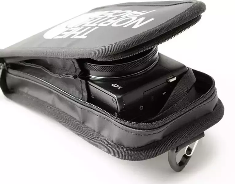 上で紹介したノースフェイスのユーティリティポケットと同様にコンパクトなスマホを入れておくのに便利なポーチです。ポケットにはパッドが入っていて壊れやすいものを収納しておくのに便利です。