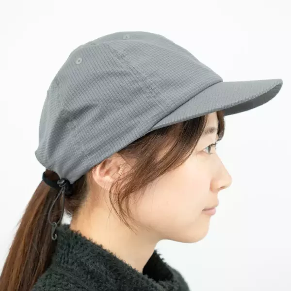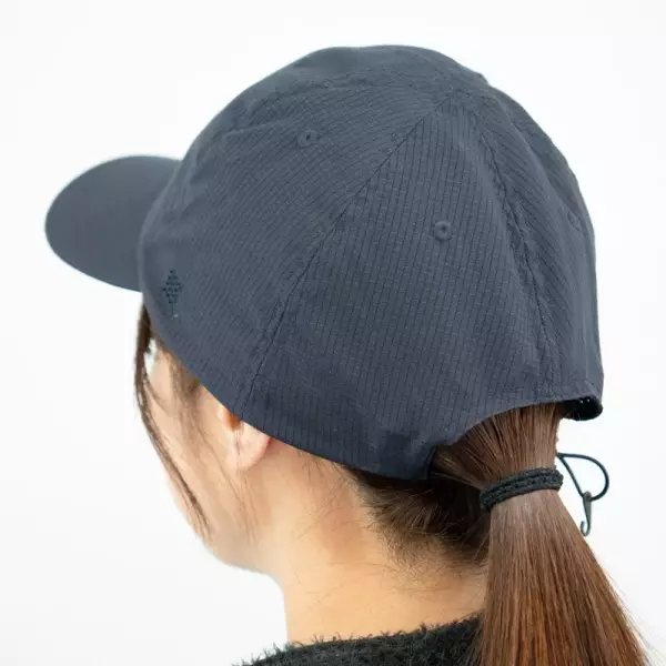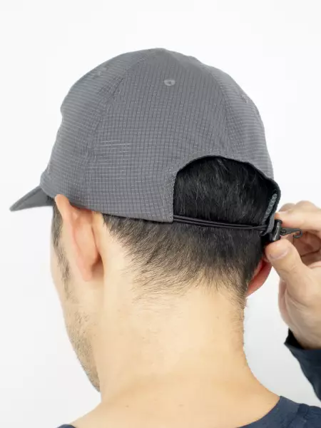 側頭部から後頭部にかけての広いメッシュ素材と、フロントの生地にサンドウィッチメッシュポリエステルを使用しているため、大変通気性に優れています。乾きが早いため発汗量の多いトレイルランニングやファストパッキングなどのアクティビティに最適です。後頭部でサイズ調整もできます。
