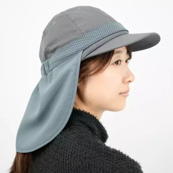 日差しを遮るだけでなく、通気性に優れた素材であるモンベルのウイックロンクールを採用しているため風を通して涼しく、首もとは常に快適です。UVカット効果とクールダウン効果を両立させたモデルです。