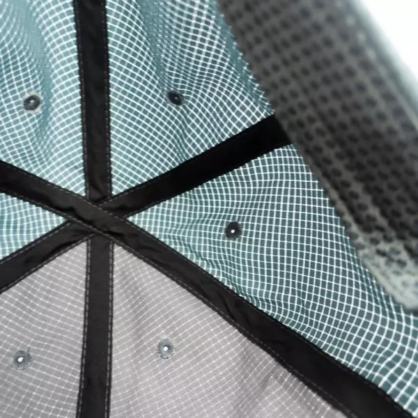 サンスクリーン部分の素材には虫よけ加工をプラス。本体のメッシュ素材とあわせ、夏山登山に適したキャップです。サンスクリーンは両サイドのスナップボタンで着脱可能。あご紐も取り外すことができます。さまざまな使い方ができるので、多くのアクティビティで使えます。