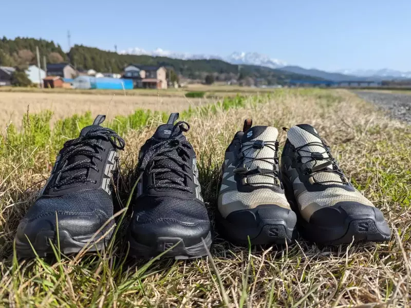 サロモンのオフィシャルサイトではランニングシューズカテゴリーで紹介されていますが、実際に履いてみるとクッショニングと剛性感に若干の違いはあれど、どちらも安定感に優れているため軽登山やハイキング、トレイルランニングなど様々なアクティビティで活用できるシューズに仕上がっています。