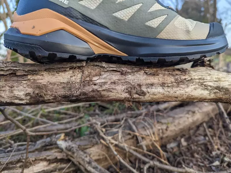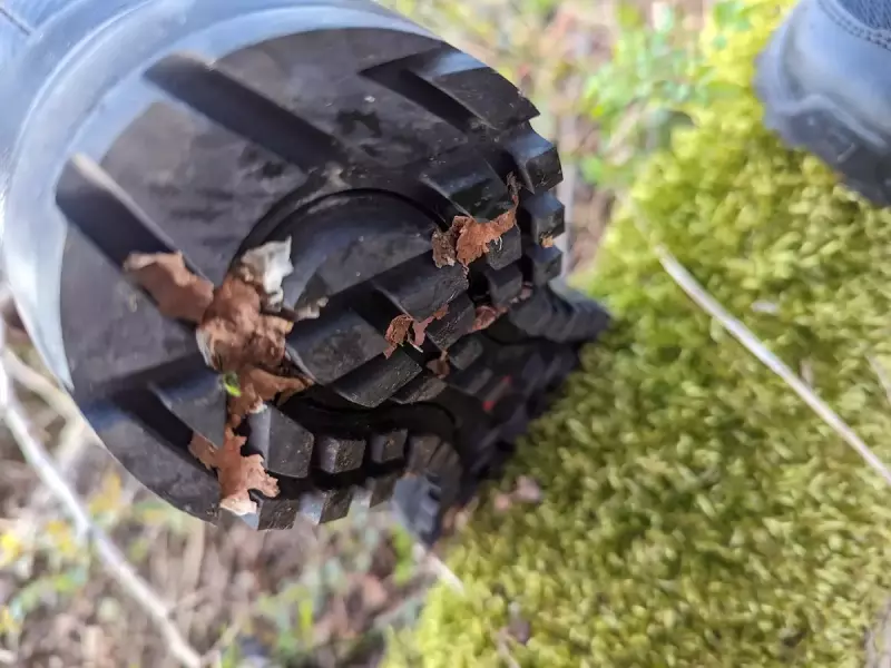 特に雨が降った登山道で、濡れた木の根や幹に足を置いた時のグリップ力は素晴らしく、安定した歩行をサポートしてくれます。