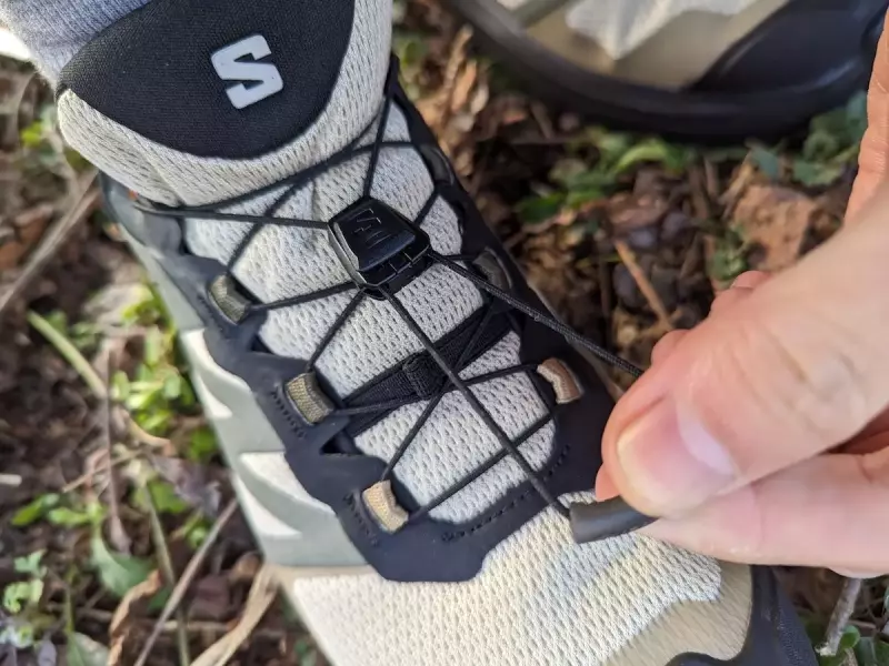 例えば頑丈なトゥキャップやクイックレースが邪魔にならないように施されたゴムバンド、砂利や砂がシューズの中に入ってしまった時にすぐに脱ぎ履きができるための踵に備わったストラップなど、様々な山に出かけたくなるような冒険心を掻き立てるようなシューズです。