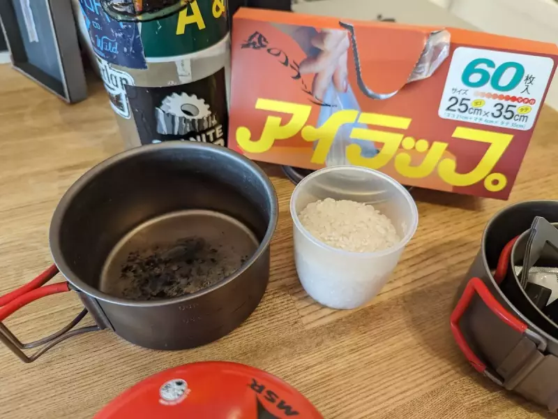そんな固定概念を覆すのがポリ袋炊飯です。熱伝導率が悪いチタンクッカーでも炊きたてのご飯を楽しむことができます。今回はポリ袋炊飯の方法と、どんなクッカーでも炊飯ができることを証明するためにエバニューのコンパクトなチタンクッカーでポリ袋炊飯に挑戦してみます。