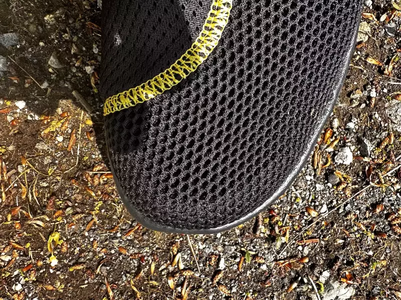 この素材はクッション性の高いEVAフォームなので足裏からアッパーにかけて包み込むようなフィット感があり、まるで誰かに足を掴まれているような感覚があります。足に汗をかきやすい季節でも通気性が高いので非常に快適です。