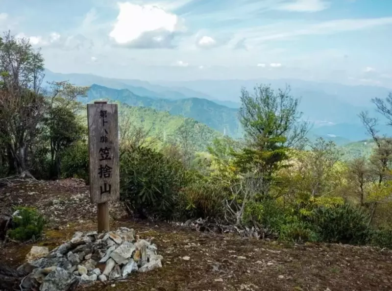 笠捨山山頂です。第十八靡です。ここからは激下りの後、南奥駈最大の難所である地蔵岳へ向かいます。