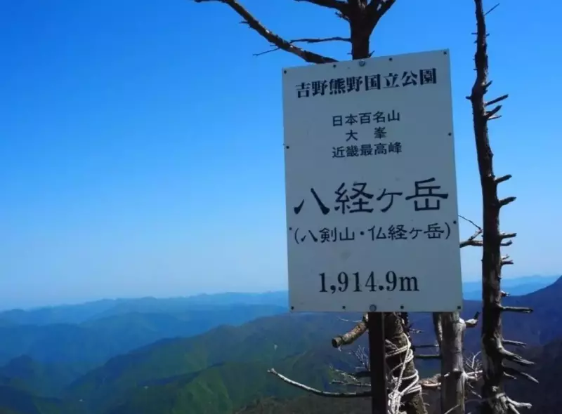 「八経ヶ岳」近畿最高峰です。弥山から約30分です。この日は快晴で絶景でした。ここから明星ヶ岳方面へ向かい、分岐を前鬼方面へ進みます。