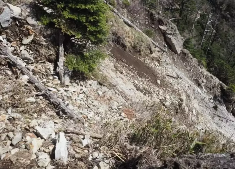 明星ヶ岳から楊子の宿へ向かう途中の崩落地。この辺りは崩落箇所が多いので慎重に進みます。前回歩いた時よりかなり崩れている気がしました。