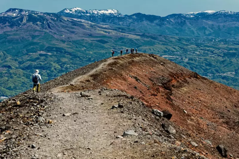 2つあるシェルターを過ぎれば第二外輪山のなだらかな稜線を進み前掛山山頂に到着です。遮るものが何もない360度の大パノラマが目に飛び込んでくることでしょう。