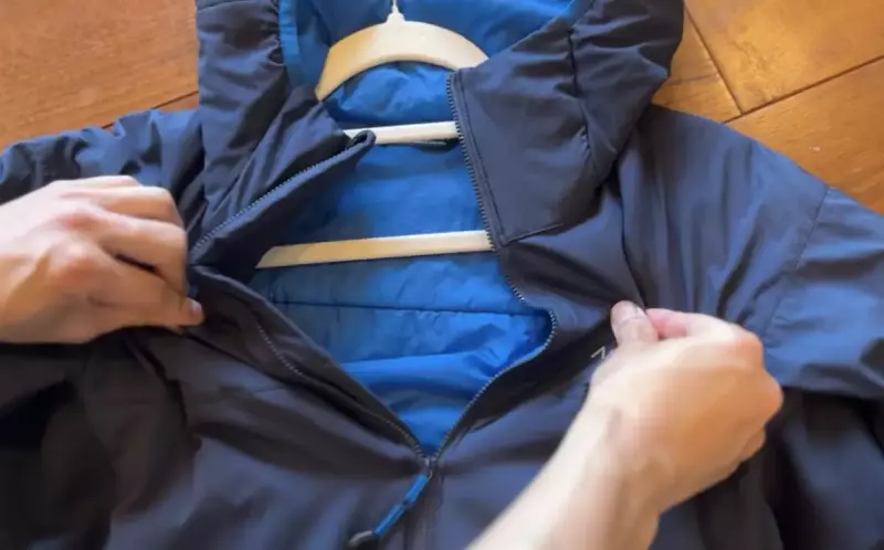 アトムLTフーディーには内側にジッパーポケットを備えており、スマートフォンなどを収納するのに便利です。