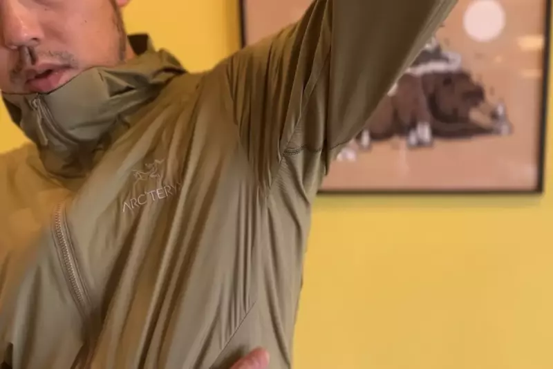 袖の違いは特徴的で、アトムLTフーディーは袖全体がヨーノ20でコアロフトを包み込んだ保温性に優れたデザインなのに対し、アトムSLフーディーは化繊インサレーションが全く入っていないメッシュ状の素材に表生地を貼り合わせた通気性に優れたデザインです。