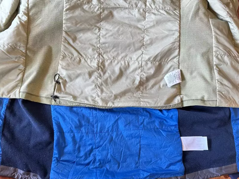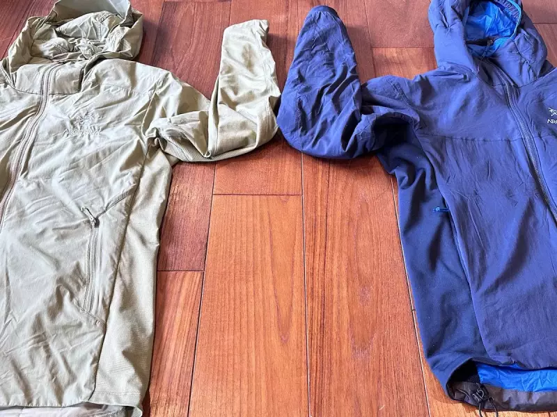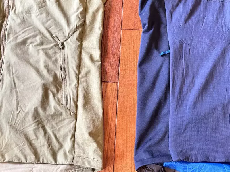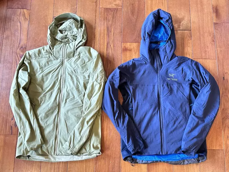 共通点は中綿と表地です。中綿はアークテリクスが開発したコアロフトと呼ばれる化選素材を使用しています。コアロフトの特徴は保温力が高いだけでなく優れた速乾性と通気性を兼ね備え行動中に着用していても蒸れづらいです。またロフト(嵩)の維持に優れていて、圧縮してパッキングしても着用時に復元してくれます。