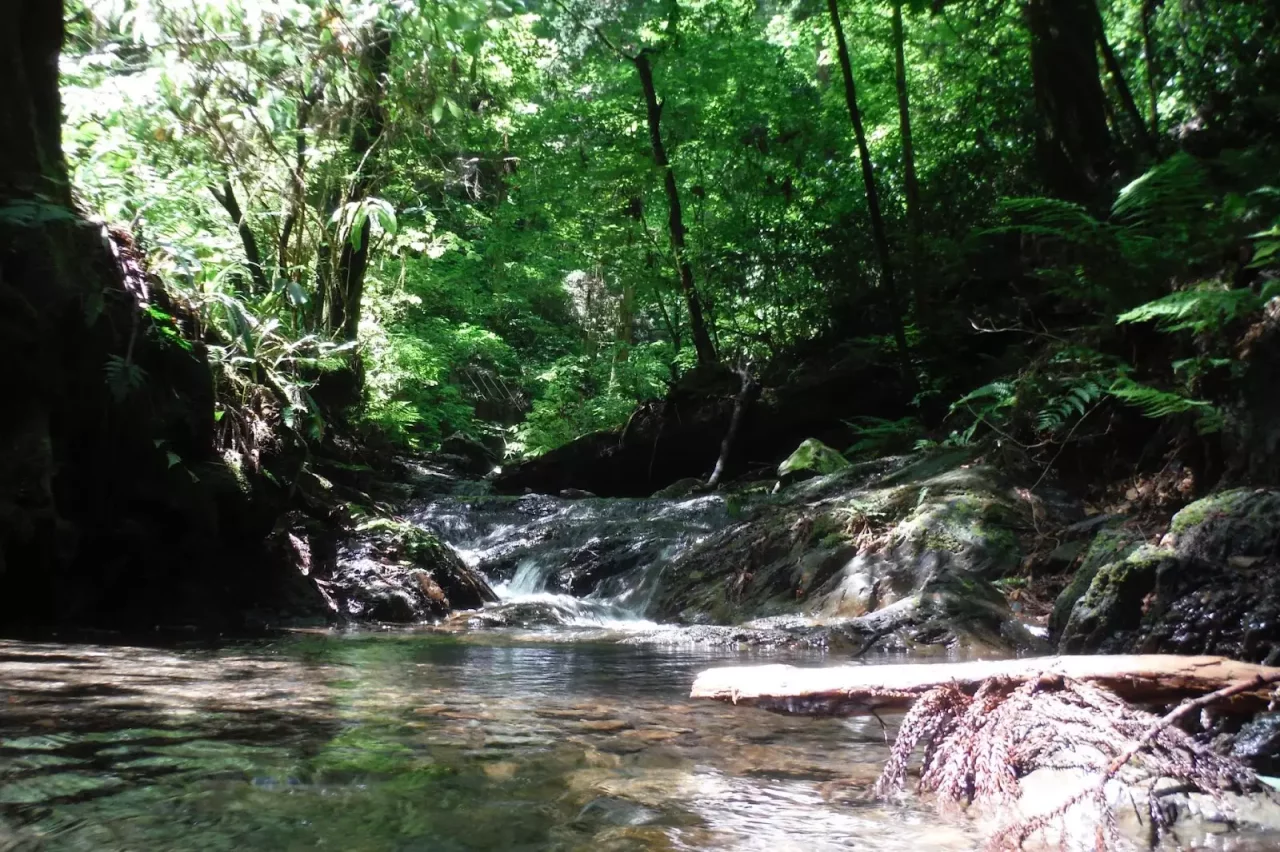 コースの約4分の3を登ったあたりで、数十メートルにわたって小川の中を登る箇所があります。短い距離ですが沢登りのような感覚を楽しめますよ。