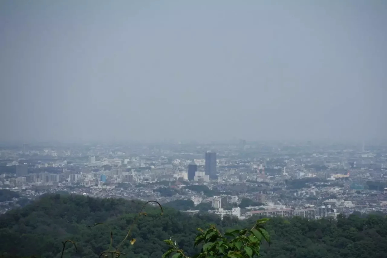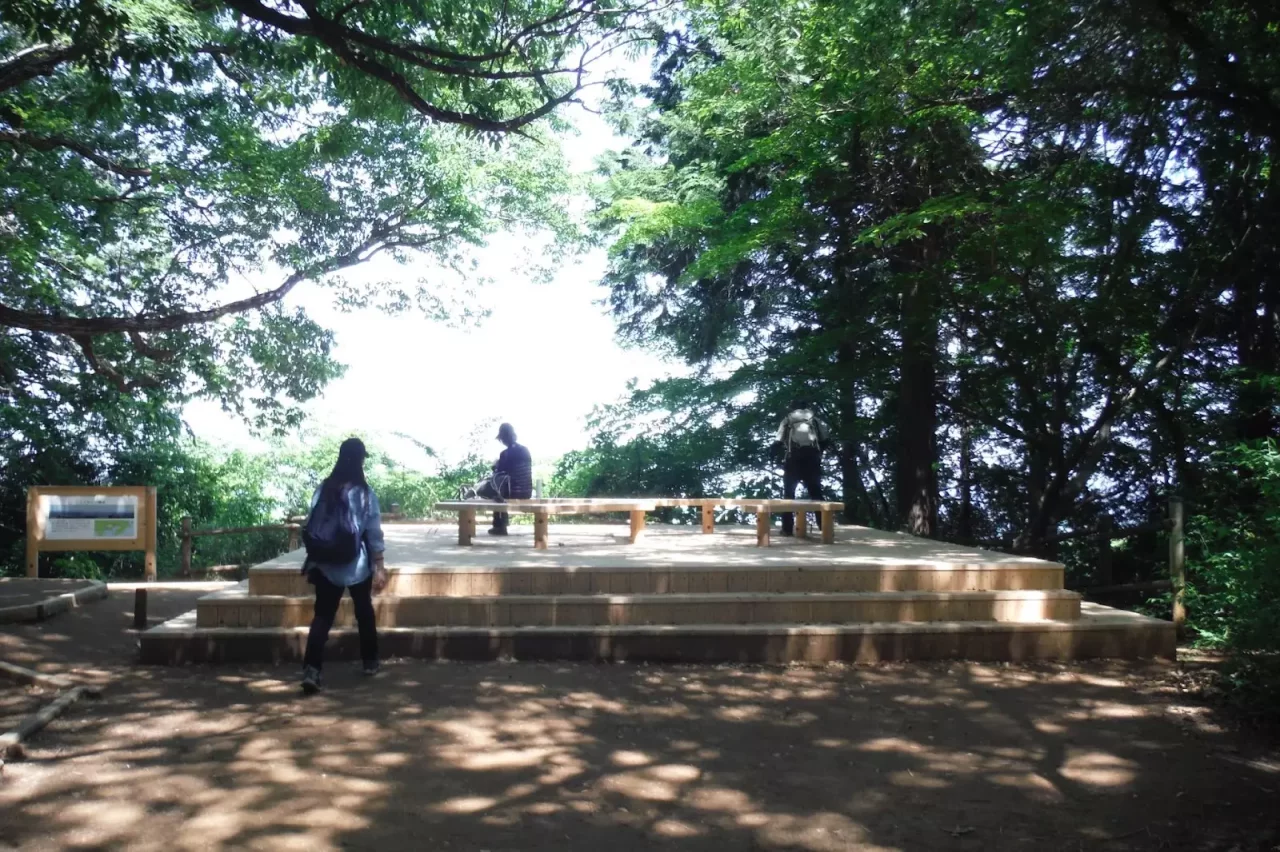 コースの途中にある稲荷山の山頂は展望台になっていて大パノラマが楽しめます。展望台からは八王子駅付近のビル群がはっきり見渡せ、展望のよいときは新宿や池袋のビル群も確認できます。