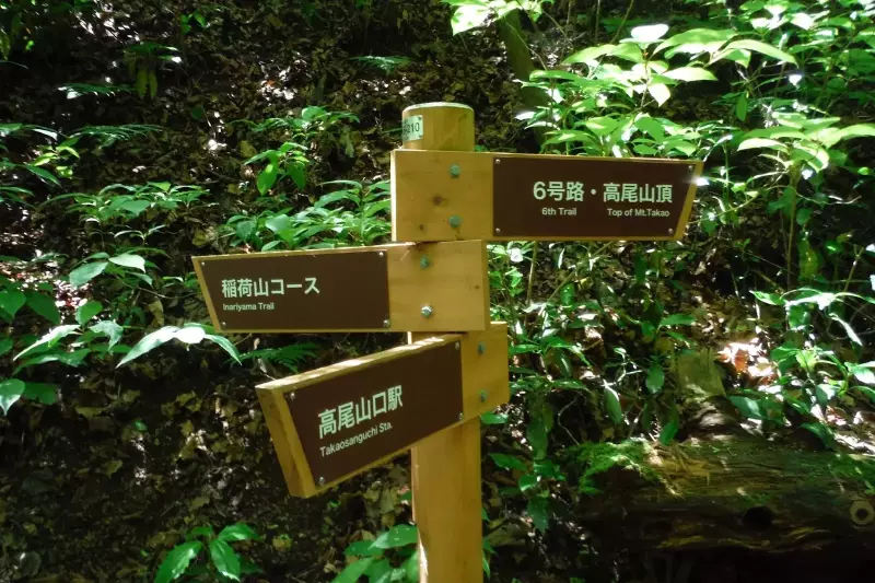 売店やトイレがあり観光しながらゆっくり登れることも、ほかの高尾山の登山コースとは異なる点です。焼きたての団子を食べて休憩したり、「高尾山さる園・野草園」に立ち寄ったりするのもよいでしょう。八王子天然記念物の「たこ杉」も見られます。なお、1号路は明治100年の記念につくられた東海道自然歩道の東側の起点です。