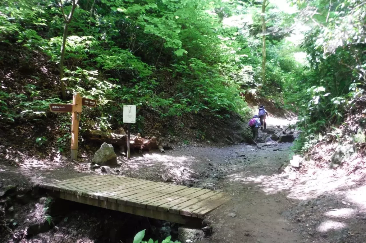 6号路は小川沿いの登山コースで、登りの所要時間は約1時間40分です。小川を見たりせせらぎを聞いたりしながら登れるため、夏にはピッタリのコースと言えます。登山道の道幅は狭くほとんどが砂利道で、木の根やゴツゴツした岩肌の上を歩く箇所もあります。谷であり雨が降ったあとの数日間は滑りやすいため、登り下りには注意が必要です。